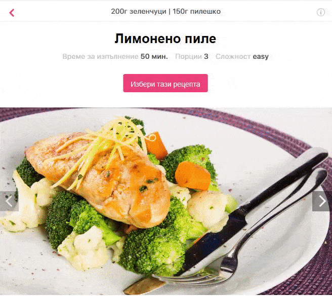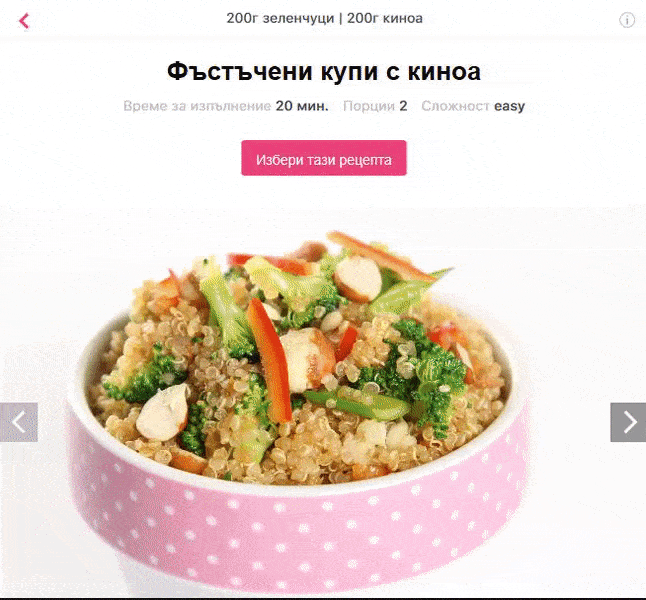 Вариантите за приготвяне на храните от режима ти са многобройни. За да направим спазването на нашите режими още по-лесно и приятно, сме добавили предложения за рецепти към всяко ястие. Спокойно можеш да експериментираш и да се насладиш на вкуса, следвайки целта си.